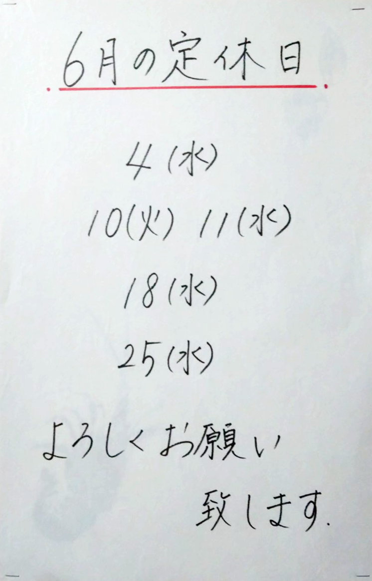 • 6月の定休日のお知らせ
